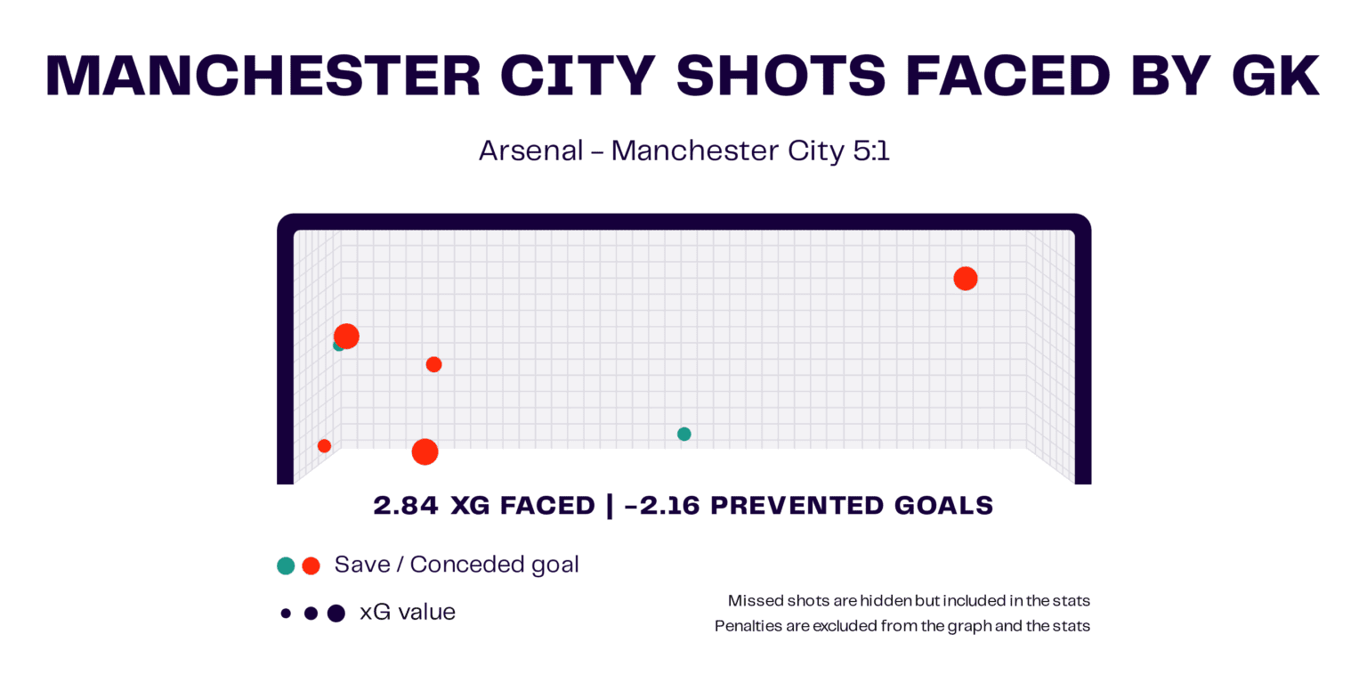 Позиционирование Ортеги: вышеприведенные данные показывают неудачный выбор расположения Ортеги, по крайней мере, в одном из голов «Арсенала», что вызывает вопросы об игре вратаря. Это также подчеркивает элемент невезения и указывает на реактивную, а не проактивную оборонительную позицию.