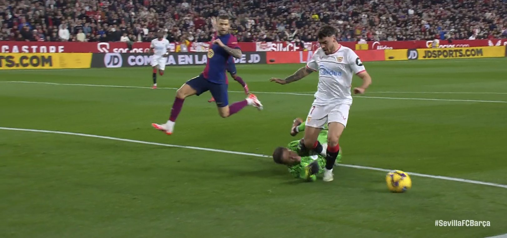 🎥 Судьи опять топят «Барсу»? Похоже, гол «Севильи» нужно было отменять – Сауль залез в офсайд 😡