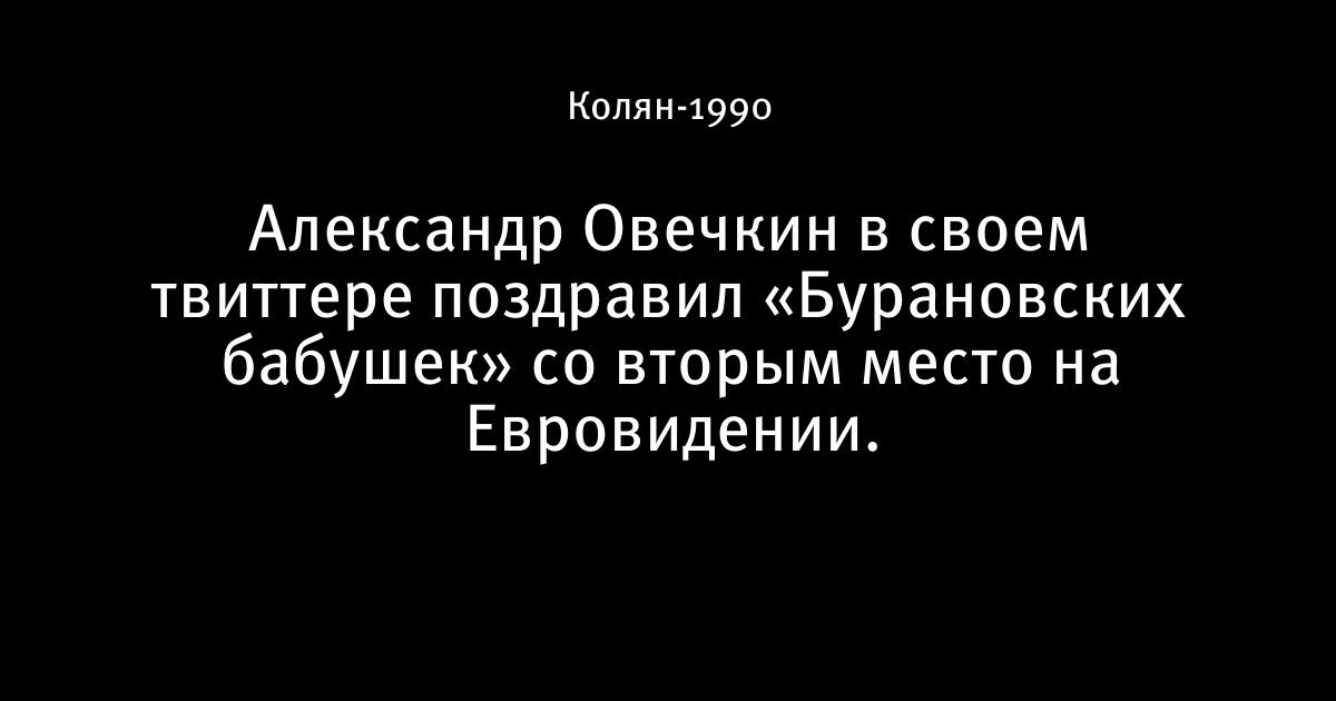 27 мая 2012, 23:36 Александр Овечкин в своем твиттере поздравил «Бурановских бабушек» со вторым место на Евровидении. Автор Колян-1990 Этот пост опубликован в блоге на Трибуне Sports.ru. Присоединяйтесь к крупнейшему сообществу спортивных болельщиков! Другие посты блога Вы это видели?