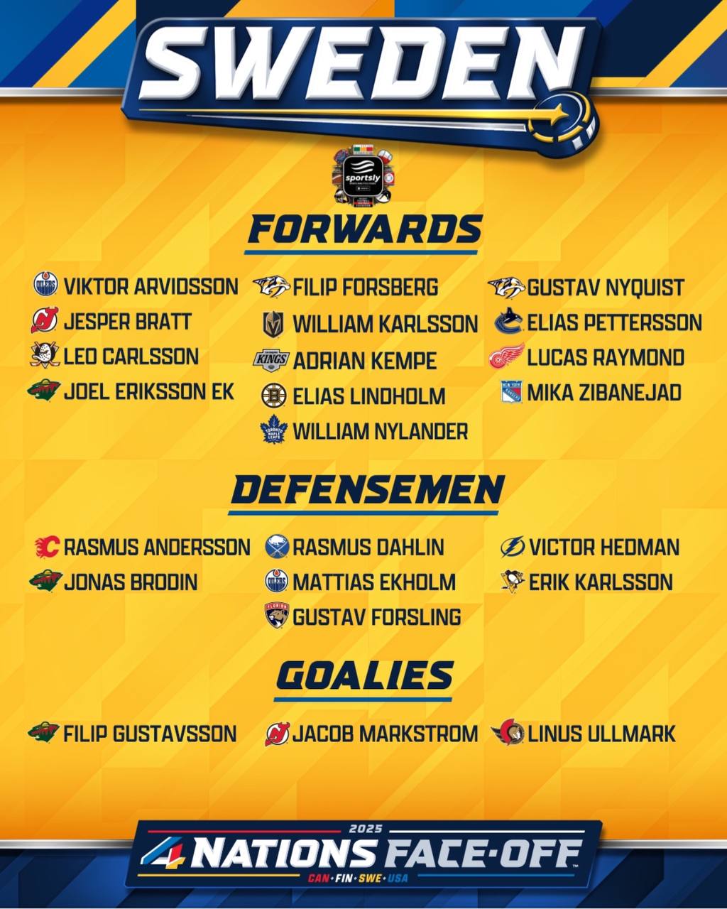 Открывать Турнир четырех наций предстоит Канаде и Швеции — и если про “кленовых” мы уже говорили в прошлой статье, то теперь самое время разобраться, чего ждать от “Тре Крунур”. Да, скандинавы не могут похвастаться таким глубоким резервом в НХЛ, как Канада и США, но списывать их со счетов не стоит. У команды достаточно звезд, которые способны удивить на турнире.