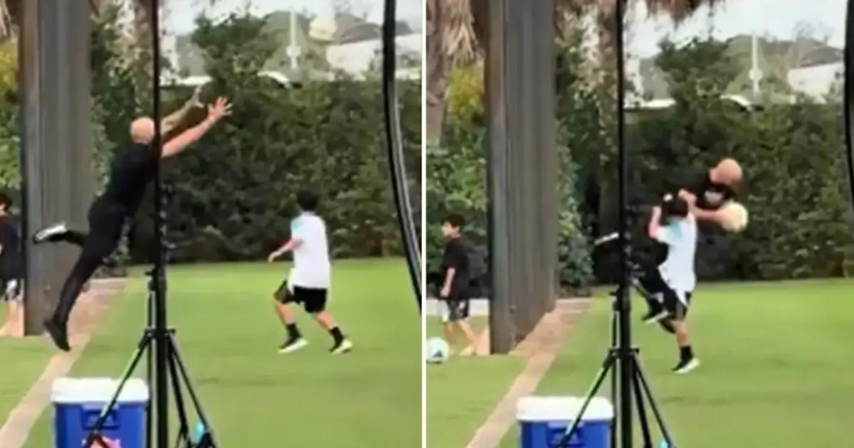 Он стоял в воротах и классно поймал мяч после удара одного из сыновей Месси: