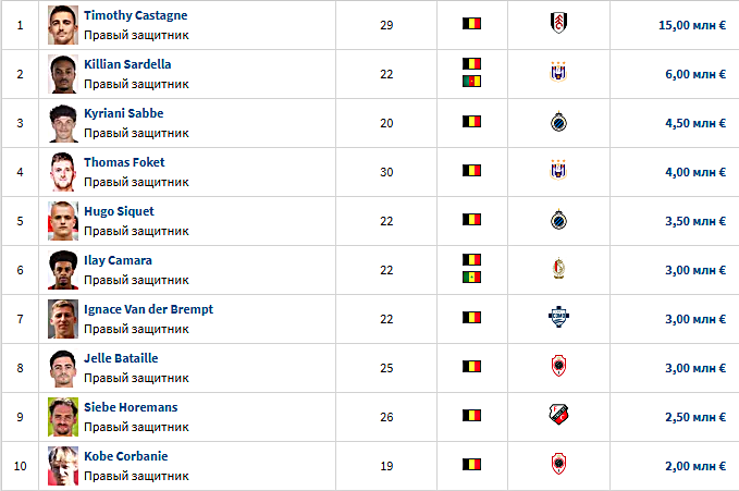 Ну и про земляков Тома Менье не забываем – эталонная сборная, золотое поколение, Де Брюйне, Лукаку и тд. А на флангах обороны полнейший мрак и безнадега. Причем давно. Вот с европейцами обратная ситуация – если бразильцы и им подобные ребята бегают с недокрученными ценниками, у европейцев ценники перегретые.