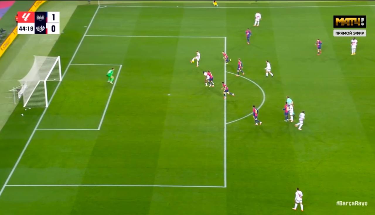 Далее «Райо» сравнял, но гол бы сразу отменён из-за активного офсайда. Здесь вопросов почти нет, Нтека находился во вне игры и уже оттуда помешал Иньиго Мартинесу попытаться добежать до Оскара Де Фрутоса. И в этом моменте совсем неважно, успел бы защитник «Барсы» помешать бьющему или нет, важно то, что он так или иначе заблокировал его, находясь за линией обороны.