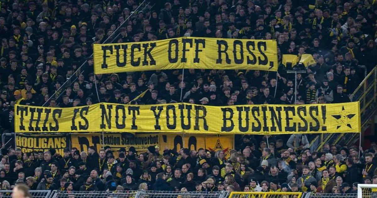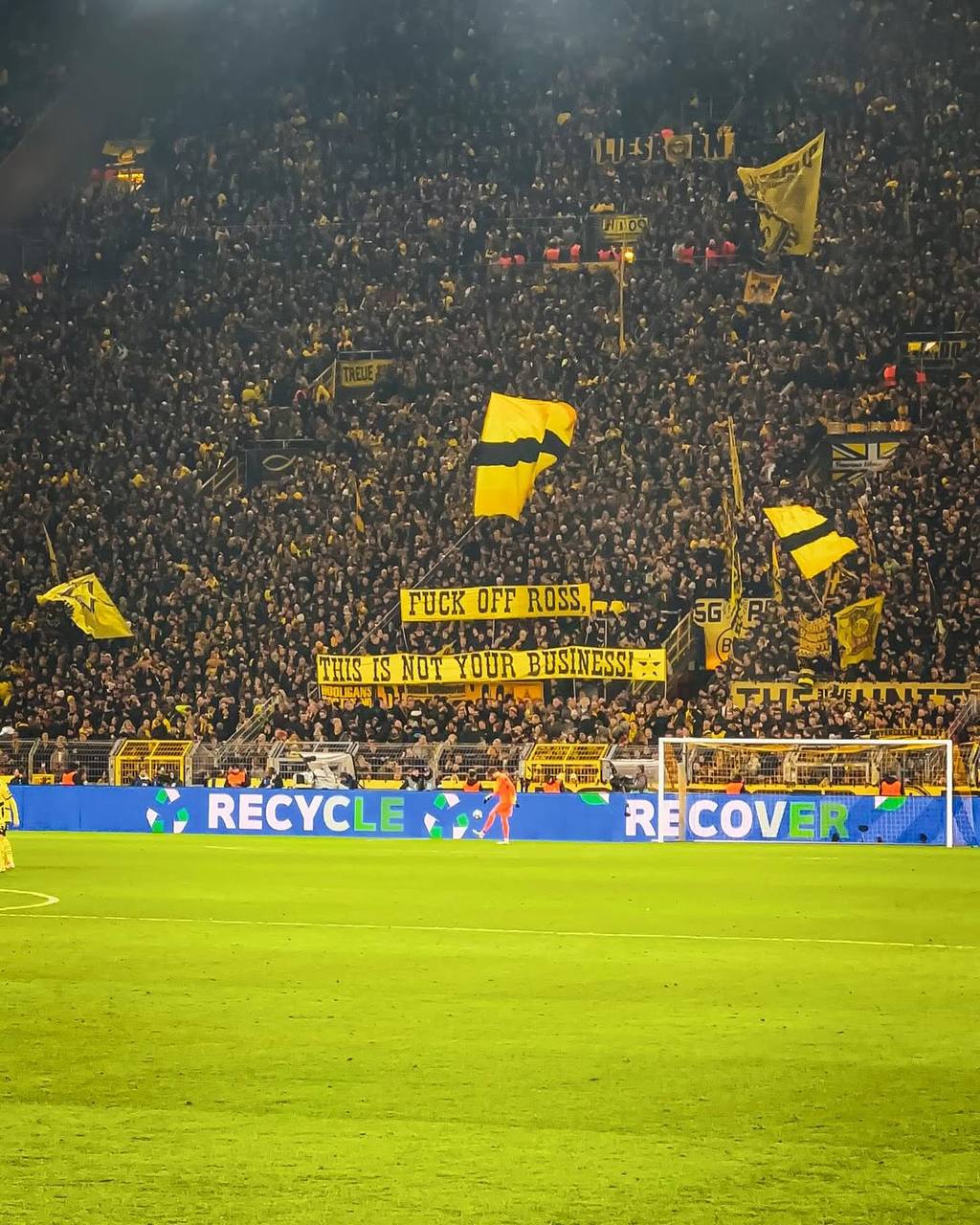 В ответном матче плей-офф Лиги Чемпионов со «Спортингом» фанатское движение «Desperados Dortmund» растянуло на трибунах «Сигнал Идуна Парк» баннер со следующим посылом – «Пошел ты, Росс! Это не твое дело!!!». Это довольно таки мягкий перевод, в оригинале это звучит гораздо эффектнее.