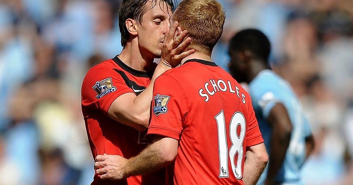 Начнем с известнейшего случая, когда Гари Невилл на правах капитана МЮ при всех схватил и поцеловал невинного Пола Скоулза. Только посмотрите на растерянную позу и положение рук Пола! А ведь Невилл еще и взял его на удушающий. Если доложить об этом кошмаре современным воинам справедливости, то как минимум о карьере ведущего на “Sky Sports” Гари можно будет забыть. Как говорил один широко известный в узких кругах видеоблогер, «мы сломаем тебе жизнь».