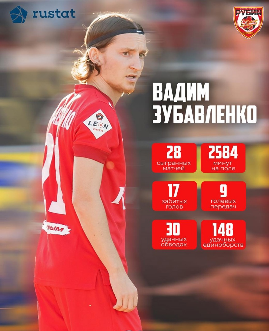 В этом сезоне Вадим был признан лучшим игроком группы 1 и не случайно. Помимо высокой результативности (более трети голов Рубина на счету Зубавленко), Вадим являлся настоящим архитектором атак ялтинской команды.