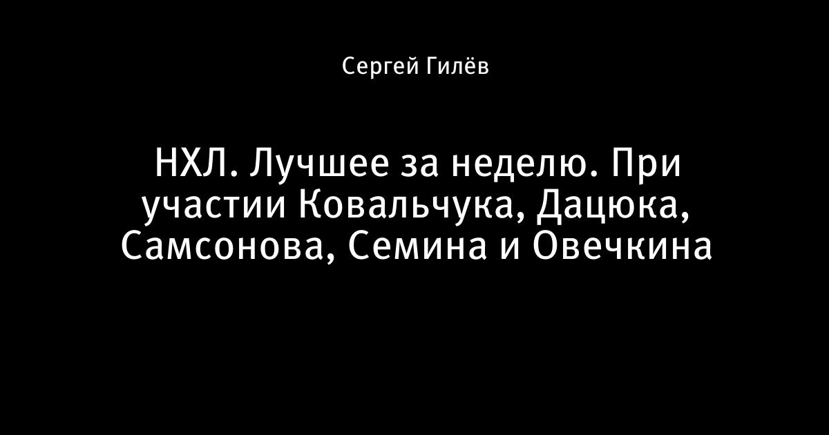 14 января 2009, 02:16 НХЛ. Лучшее за неделю. При участии Ковальчука, Дацюка, Самсонова, Семина и Овечкина Автор Сергей Гилёв Этот пост опубликован в блоге на Трибуне Sports.ru. Присоединяйтесь к крупнейшему сообществу спортивных болельщиков! Другие посты блога Айс-ТВ