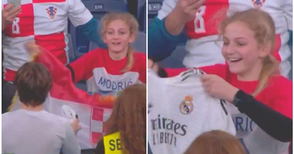 Кроме этого Лука отметился красивым поступком. Когда игра завершилась, Модрич заметил, что на трибунах стоит 12-летняя девочка с отцом. Они оба были одеты в цвета хорватской сборной, а в руках держали флаг страны. Хавбек «Мадрида» подошел к трибунам и подарил ребенку свою майку.