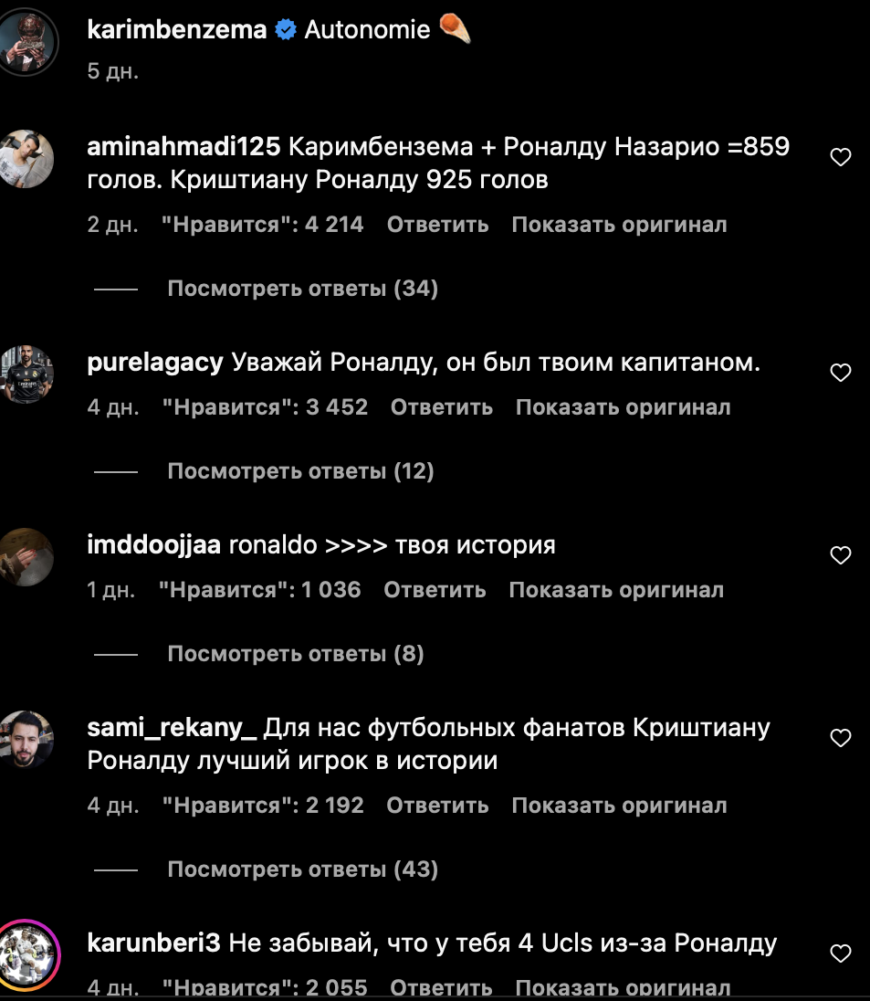 Но даже если отписок не было, то фанаты португальца уже нанесли по нему удар. Карим получил огромное количество негативных комментариев под последней публикацией.