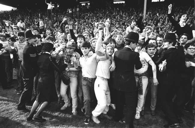 1984 год: Фанаты «Эвертона» выбегают на поле во время матча против «Арсенала»