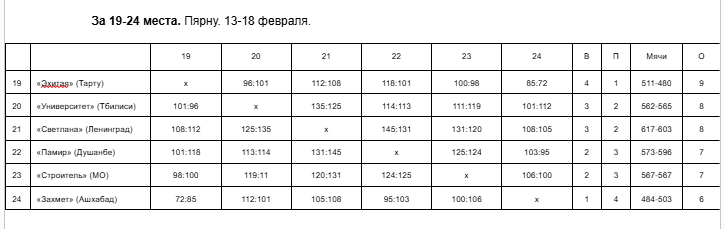 За 1-6 места. Первый круг. Куйбышев. 6-11 февраля. Второй круг. Рига. 20-25 февраля