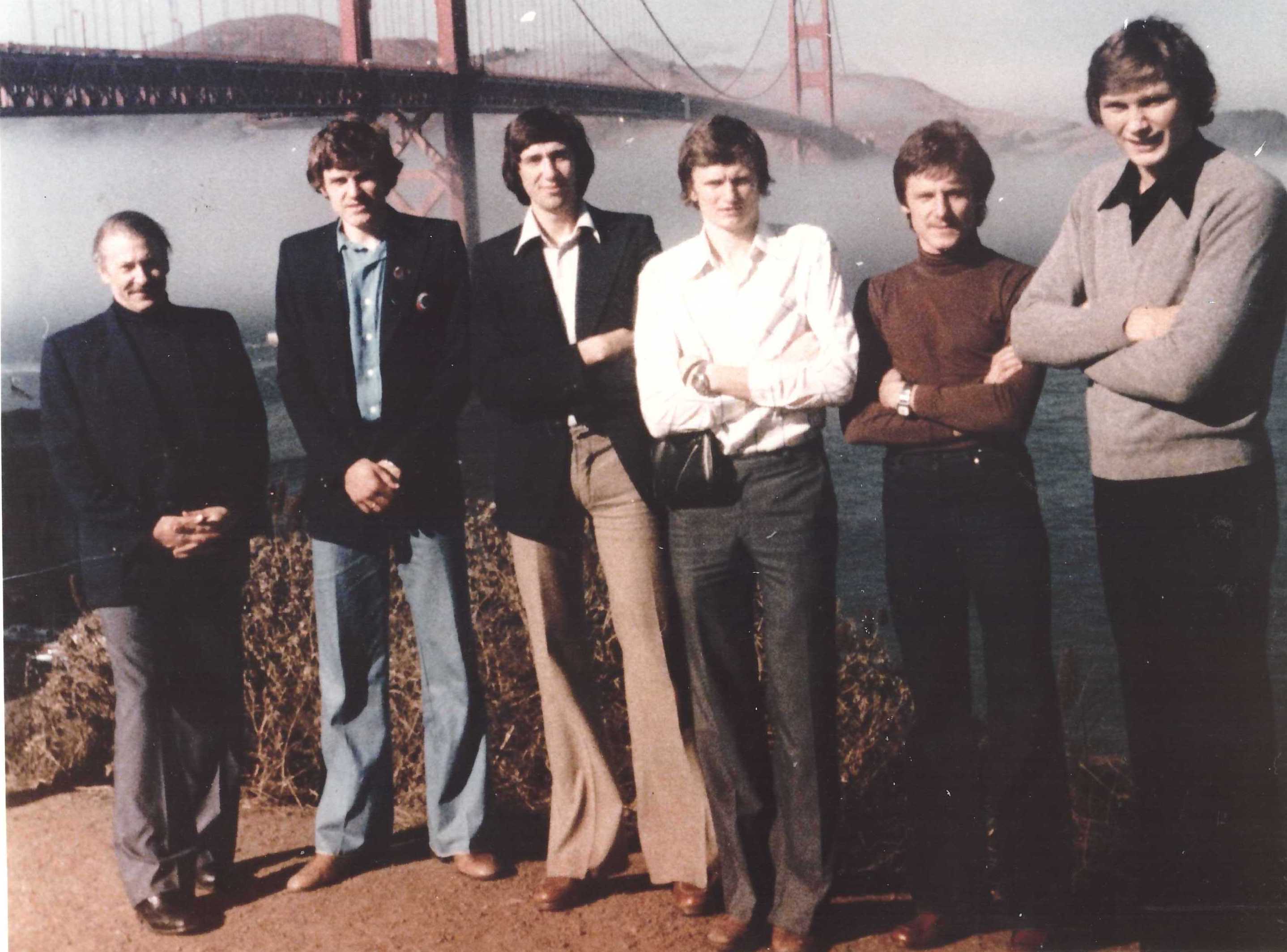 Ноябрь 1978-го. Сборная СССР в Сан-Франциско, возле моста «Золотые ворота» (слева направо): тренер Юрий Озеров, Владимир Жигилий, Сергей Тараканов, Сергеюс Йовайша, Вальдемарас Хомичус, Андрей Лопатов