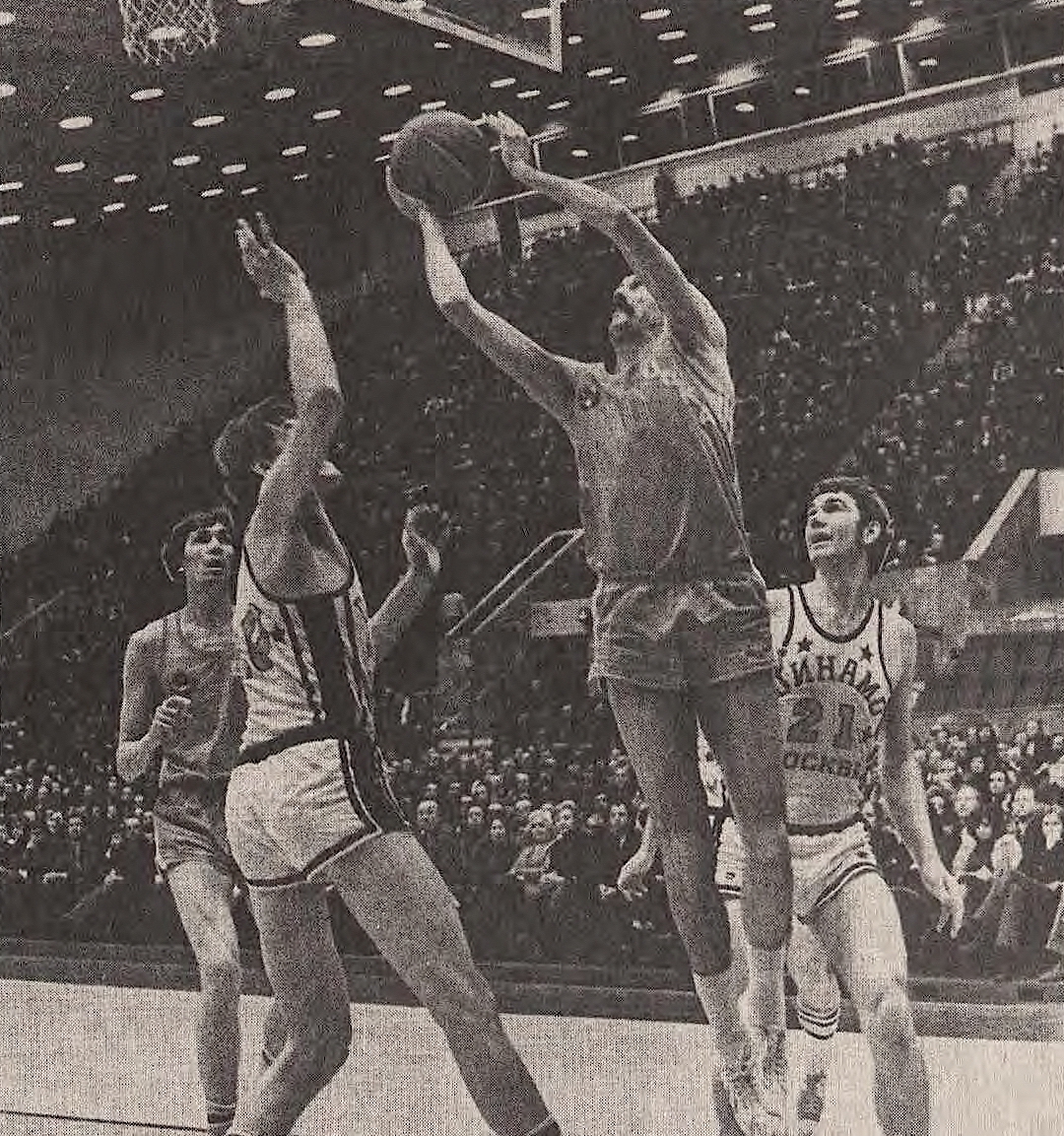 13 февраля 1977. Тбилиси. «Динамо» (Тбилиси) – ЦСКА – 88:89. Дуэль центровых: ветеран Алжан Жармухамедов (15 очков) и юный Николай Дерюгин (21). Знаменитый матч, завершившийся грандиозным скандалом из-за чудовищного судейства. Сергей Белов: «10-тысячный зал в Тбилиси, скандирующий на протяжении 40 минут: «Судья – ...»; помню стаканы, бутылки, а однажды – металлическую конфорку от газовой плиты, которыми швыряли с трибун в игроков ЦСКА. Случалось, автобус нашей команды забрасывали камнями, были случаи поджога троллейбусов после игр».