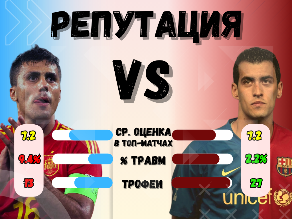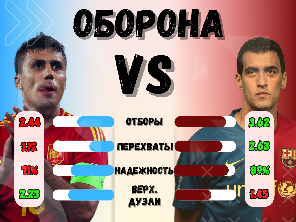 *Так как Бускетс старше Родри на 8 лет, чтобы избежать дисбаланса и сделать сравнение более справедливым, вся статистика Серхио взята до его 29-летия.