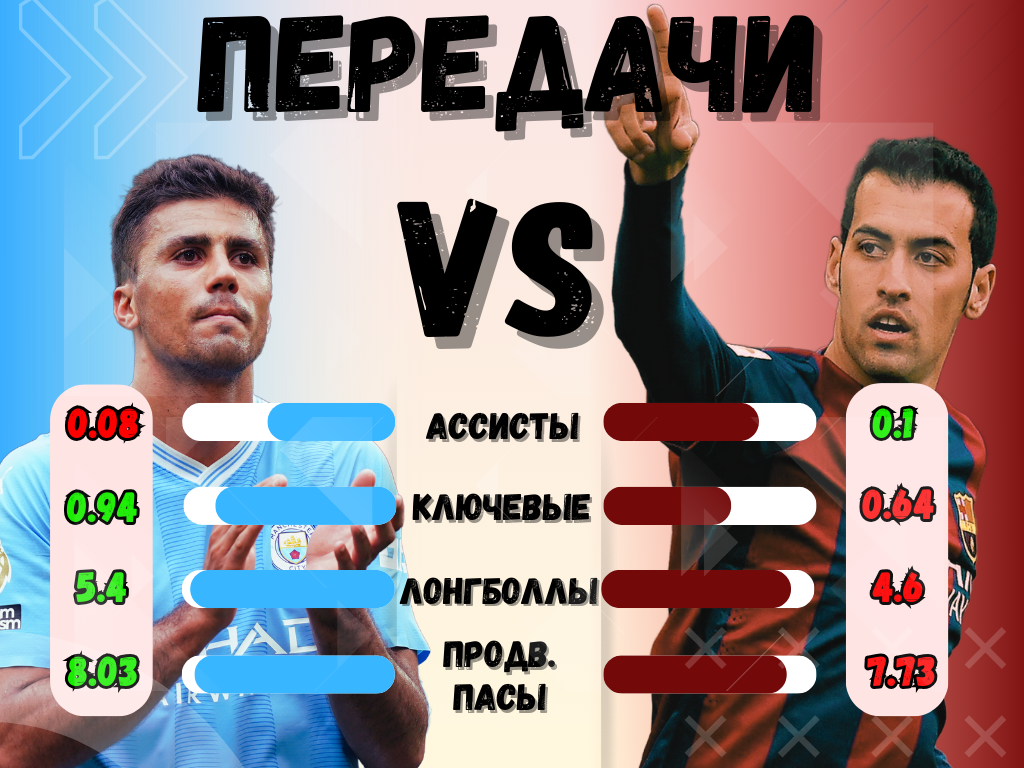 Оба футболиста, очевидно, обладают изюмительной культурой паса. Их передачи прекрасный ключ против команд в низком блоке. Например, и Бускетс, и Родри обожают низом или верхом совершать проникающие в штрафную на вингеров, обостряя игру.