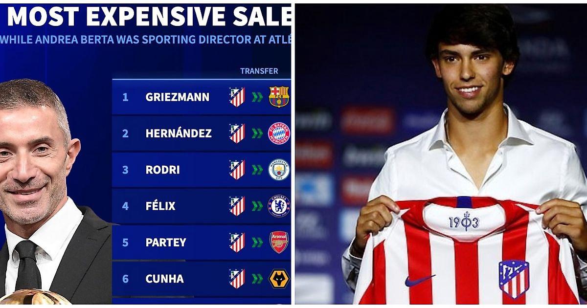 Transfermarkt прошелся по трансферам «Атлетико», когда спортдиром команды был Берта. Самым дорогим подписанием «матрасников» стал Жоау Феликс, за португальца столичный клуб заплатил «Бенфике» чуть больше 127 млн евро. Нынешний лидер «Атлетико», Хулиан Альварес, обошелся команде в 75 млн евро – это вторая строчка рейтинга.