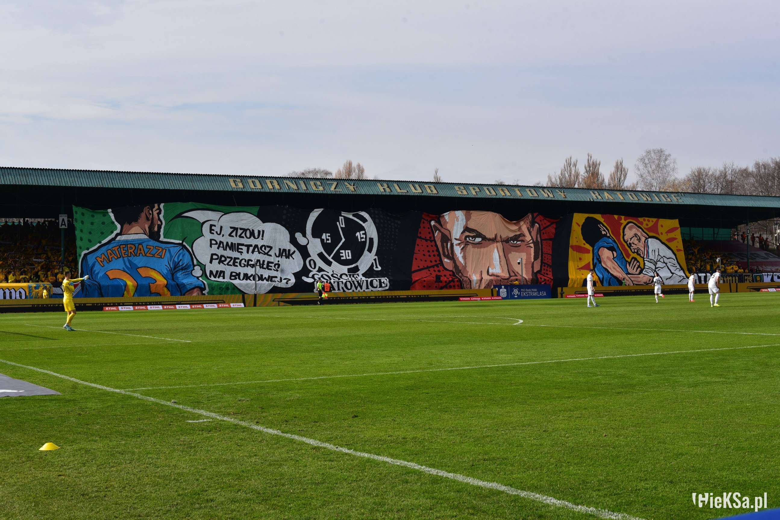 До перерыва самым ярким событием стал перформанс фанатов «ГКС» с изображениями Зинедина Зидана и Марко Матерацци. Этим перфом фанаты «ГКС» вспомнили, что их любимцы останавливали на родной арене многих звездных соперников, в том числе французский «Бордо» с Зиданом в составе в рамках Кубка УЕФА в сезоне 1994/1995.