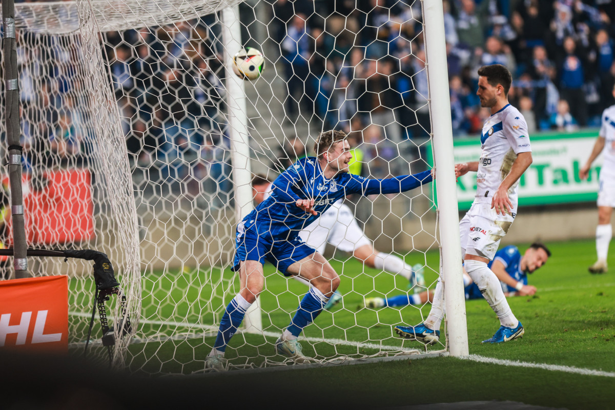 После перерыва «Корона» не оставила попыток вырвать победу. И сделать это удалось. Сначала после дальнего удара Пенчека мяч попал в штангу, а затем Ремакл поразил ближний угол ворот Комара. «Корона» уже вплотную приблизилась к первой десятке в турнирной таблице.