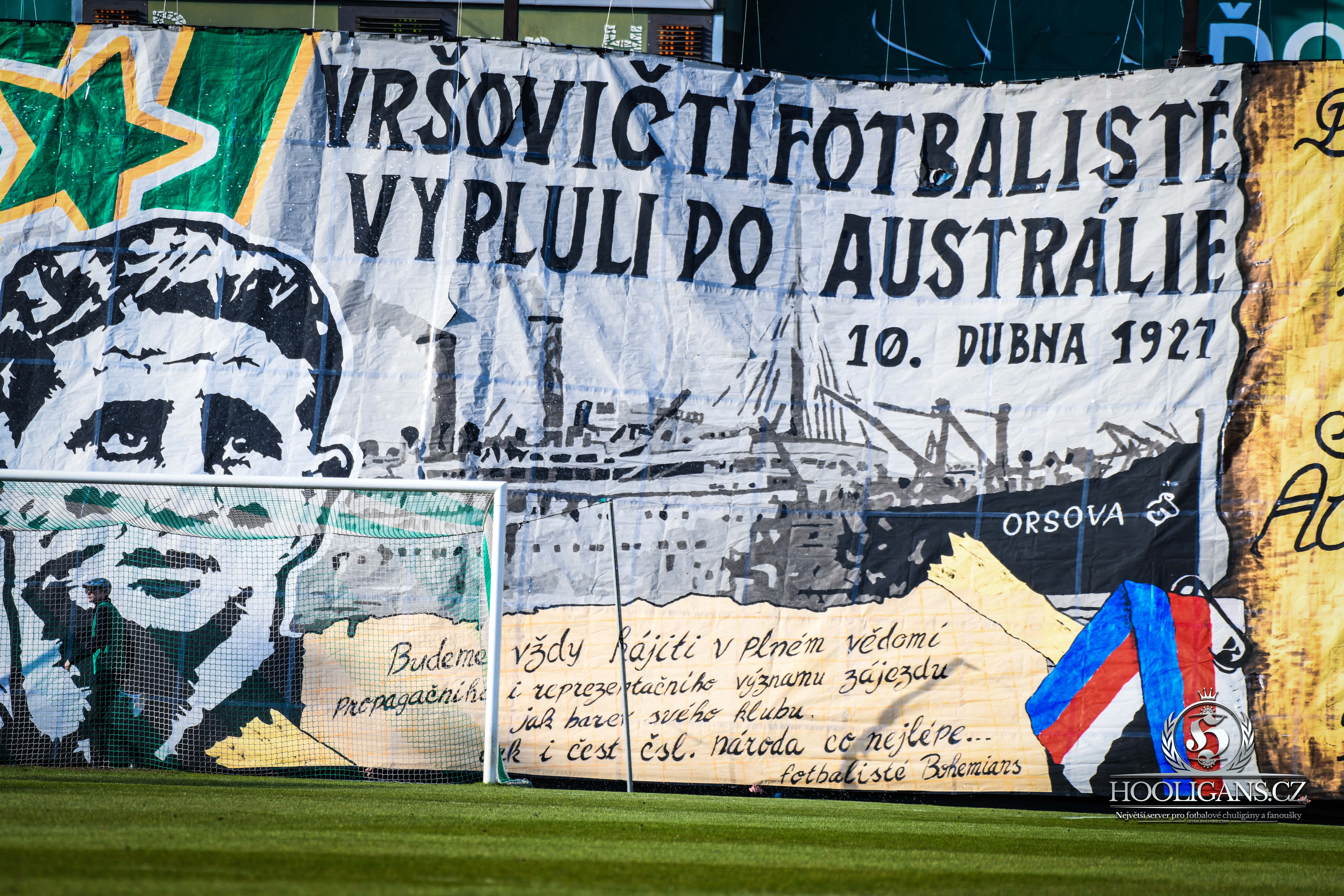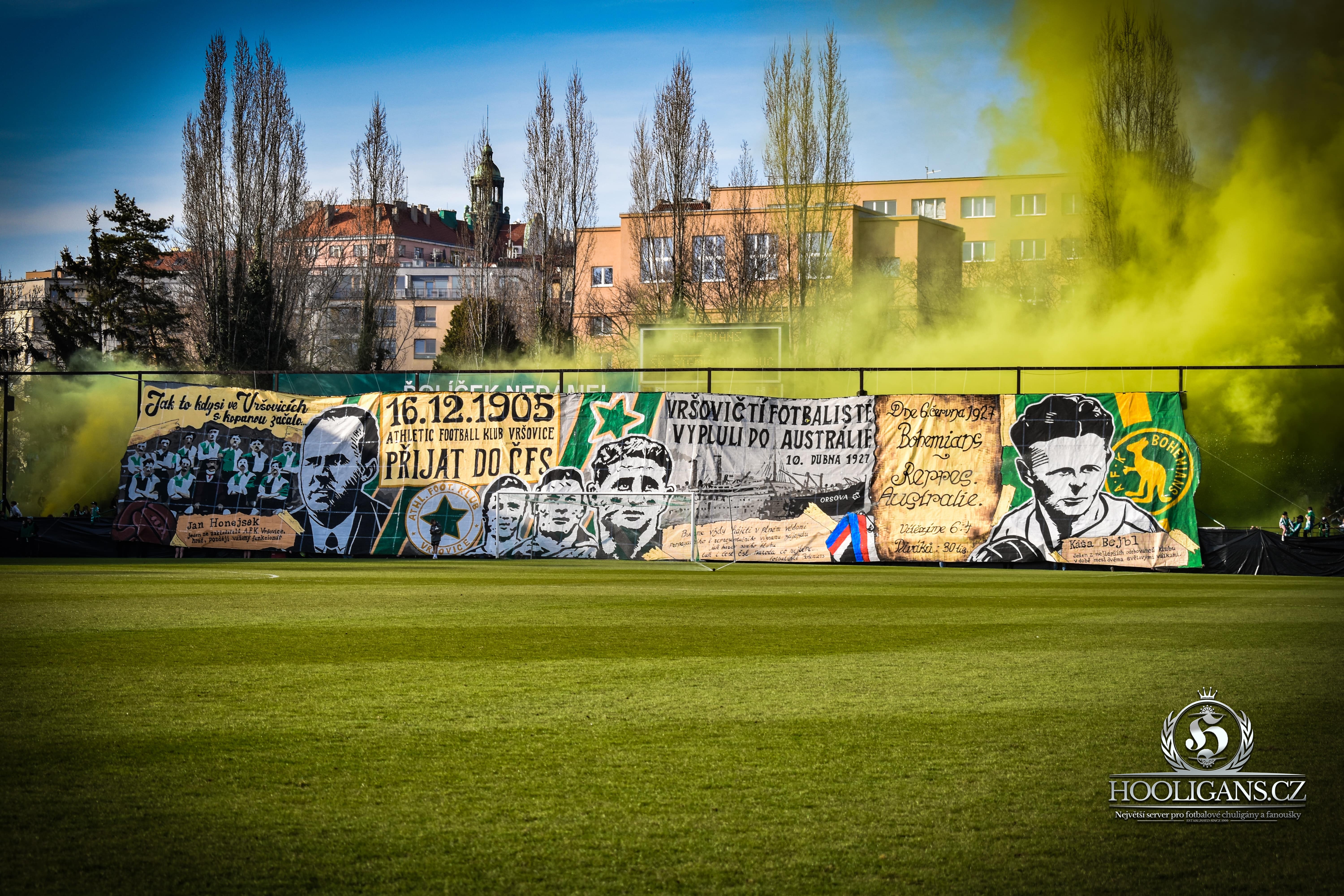 Еще год спустя Чешская футбольная ассоциация стала членом ФИФА, хотя Австрия выступала всячески против этого. «Вршовице» же, несмотря на смену названия, оставил бело-зеленые цвета «Котвы» и разработал новую эмблему. Тот первый логотип обновленного клуба и был изображен ультрас «Богемианса» на центральной трибуне стадиона «Доличек».