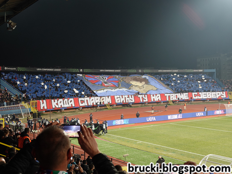 Ультрас же «Бораца» ответили классным перфомансом «Даже когда я усну, я буду там, на твоем севере», звездным небом в качестве фона и баннером с изображением спящего ребенка, которому снится победа в Лиге Конференций. Фраза «на твоем севере» намекает на то, что даже во сне парень будет мыслями находиться на фанатской северной трибуне стадиона, а сам перфоманс является отсылкой к одной из фанатских песен под названием «Я мечтаю», которую на своих матчах исполняют и «Лешинари». Она начинается максимально оптимистично: