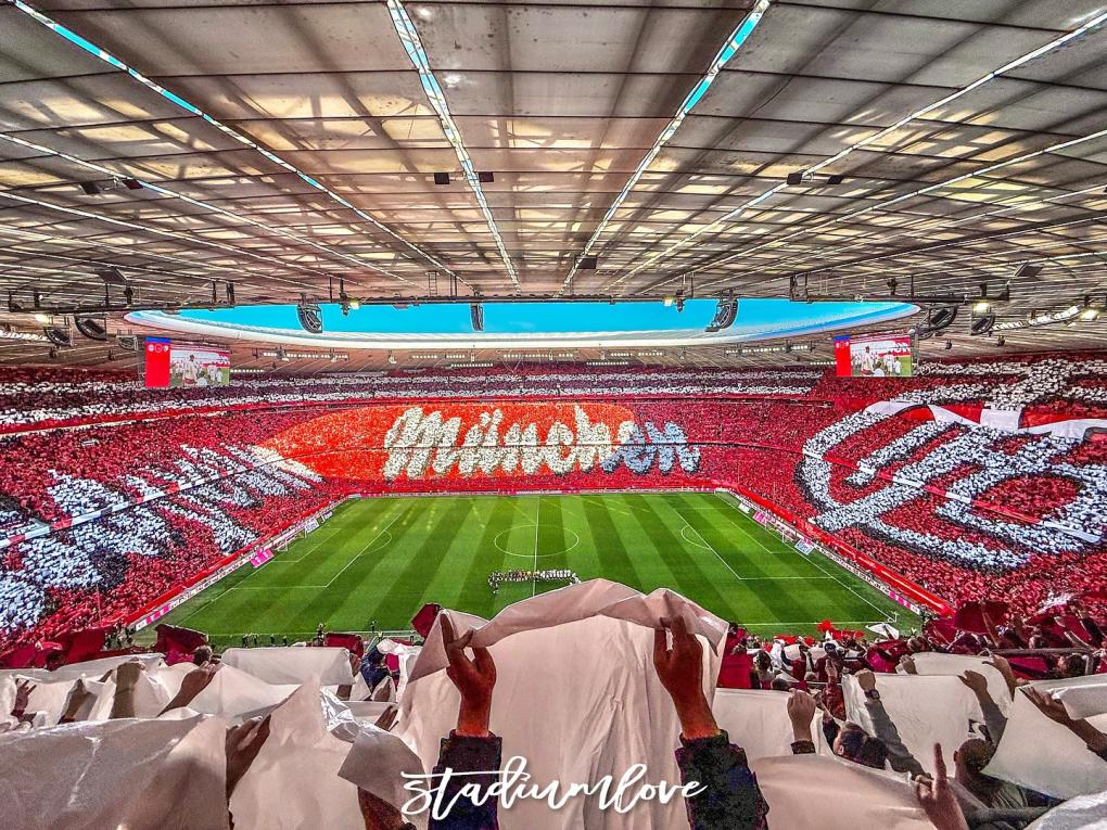 На трех трибунах плашками было выложено «Футбольный клуб «Бавария» Мюнхен», а на четвертой трибуне красовался исторический логотип команды, про который ранее никто не знал.