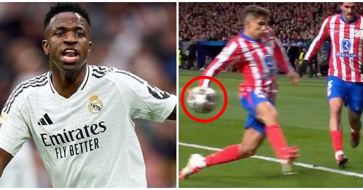 Сравняв счет по сумме двух встреч, подопечные Диего Симеоне сосредоточились на обороне. В середине тайма Винисиус, оказавшись на газоне, сумел сделать прострел, мяч попал в руку Джулиано Симеоне – игрок «Атлетико» в этот момент был в штрафной.