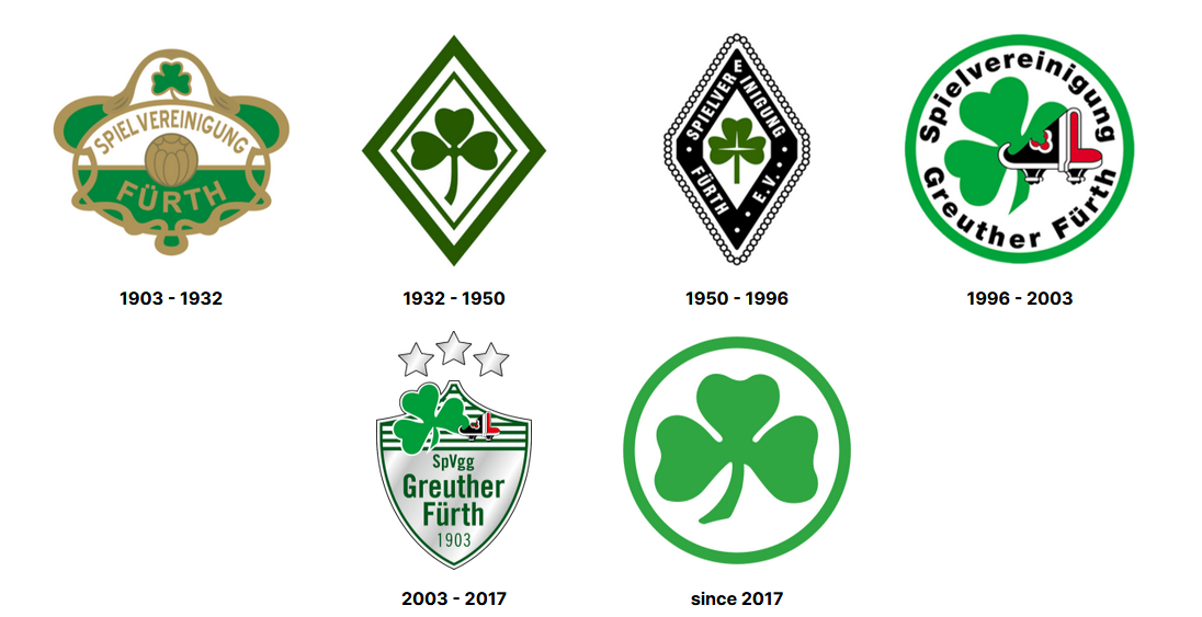 До 2017 года «клеверные» комбинировали оба варианта логотипа, но их попросили прекратить это делать и не нарушать правила. В итоге «круглая эмблема с трилистником» стала основной не только на форме – она везде заменила прежние варианты (клубная графика, графика на ТВ и т.п.). Почти. Официально поменять логотип в Фюрте не могли, на это были причины, связанные с уставом клубе (об этом ниже), поэтому «щит с башмаком и тремя звездами» все еще используется, но только в документах и на важных мероприятиях клуба.