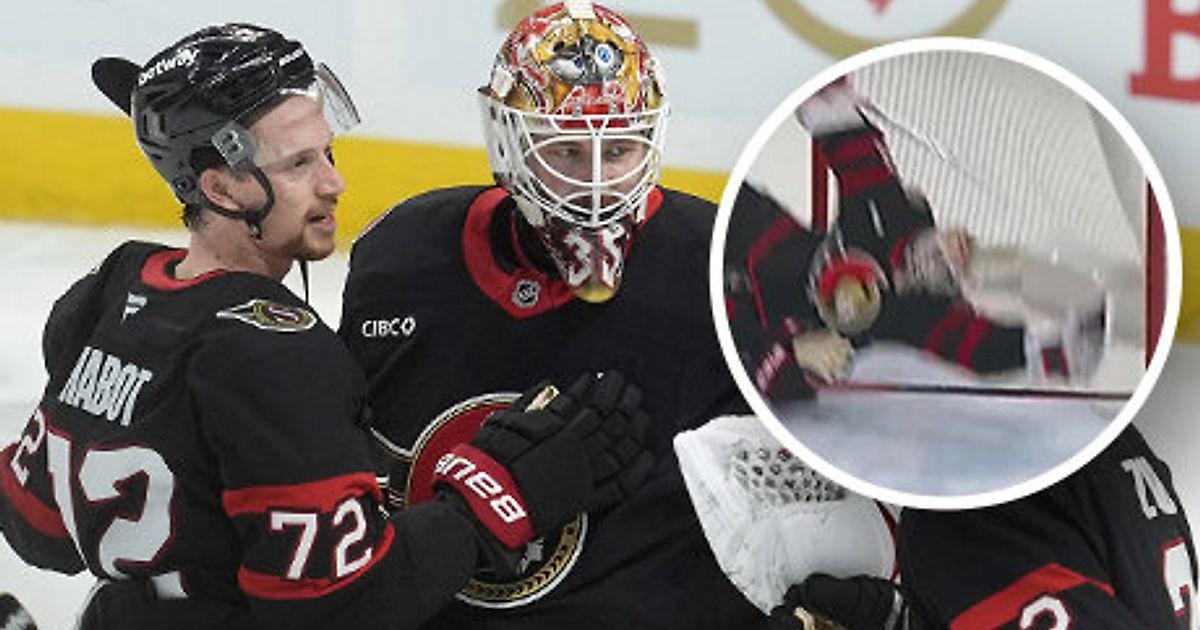 «Сенаторс» выдали такой успешный отрезок во многом благодаря усилиям шведского вратаря Линуса Улльмарка. Теперь обыгран «Бостон» (6:3), а Улльмарк отметился выдающимся спасением. Оно явно войдет в топ лучших по итогам сезона.