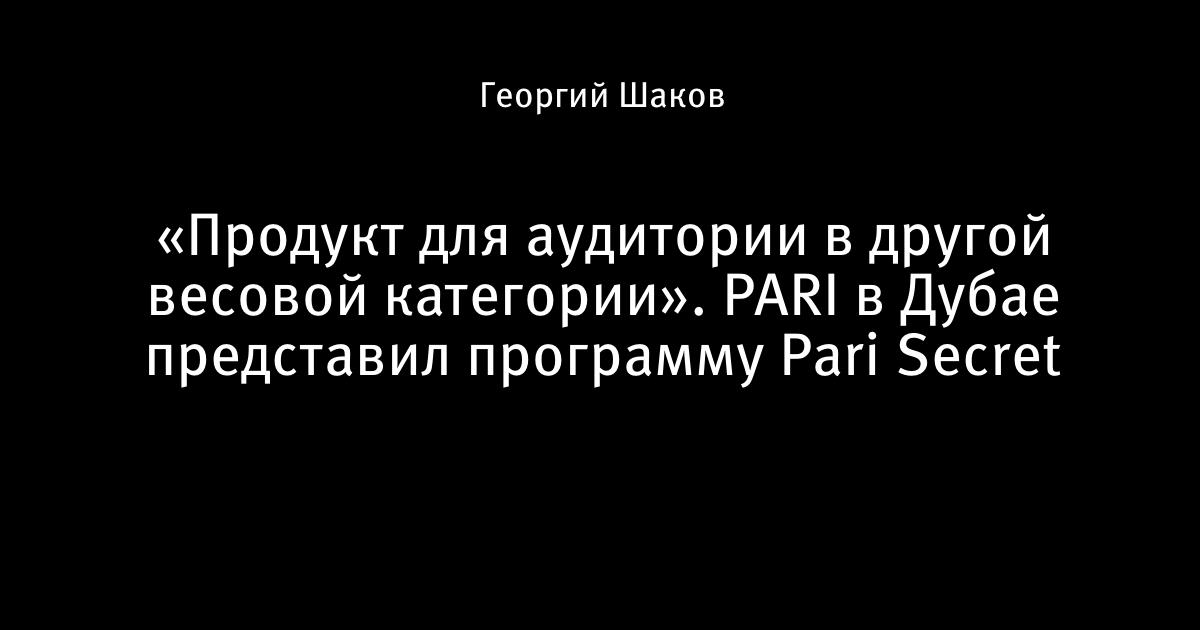 «Продукт для аудитории в другой весовой категории». PARI в Дубае представил программу Pari Secret