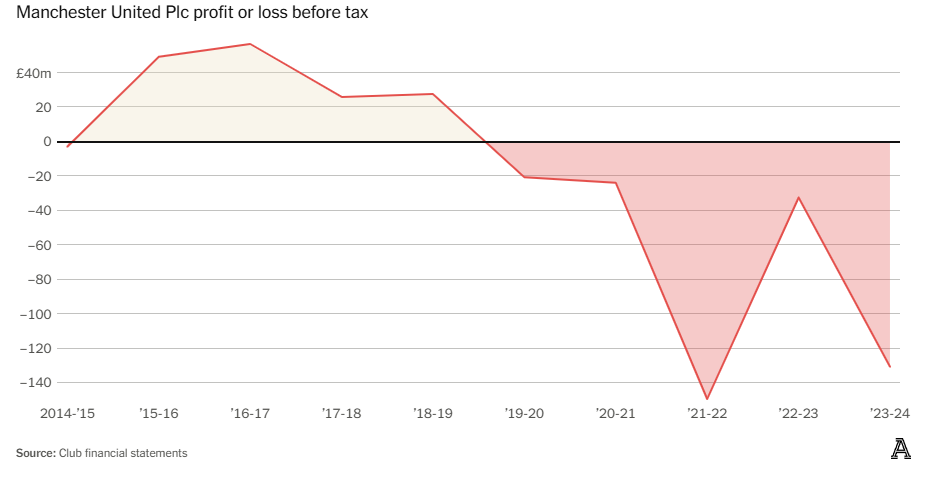 Это показатель масштабов расточительности и неэффективности на «Олд Траффорд» в последние годы: четвёртый по доходам футбольный клуб мира снова вынужден беспокоиться о PSR. «Юнайтед» продолжал тратить средства, как полноценный участник Лиги чемпионов, хотя пропускал этот турнир в пяти из последних одиннадцати сезонов.