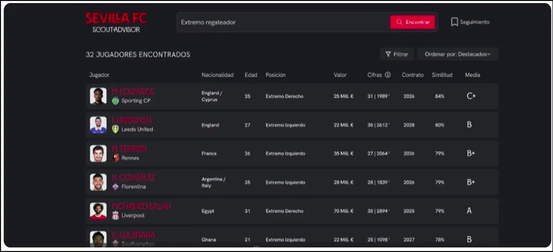 Вот так, вкратце, функционирует эта система. Благодаря её внедрению, поиск и анализ скаутских отчётов теперь занимает не часы (или недели в случае большого объёма исследуемых игроков), а секунды. С помощью этой системы Севилья планирует не только улучшать работу своего селекционного отдела, но и зарабатывать, продавая консалтинг-услуги. Безусловно, такая система не идеальна, поэтому она не замена людям, а помощник, который может очень-очень быстро выполнить рутинную работу.
