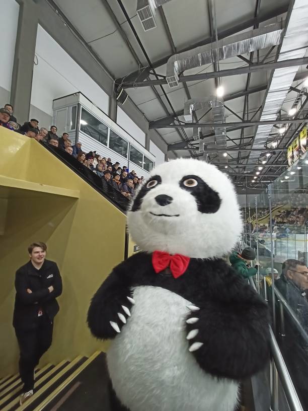 В ледовом дворце уже второй матч зрителей встречает маскот панды. Непонятно почему именно панда, ну да ладно, пусть будет ))