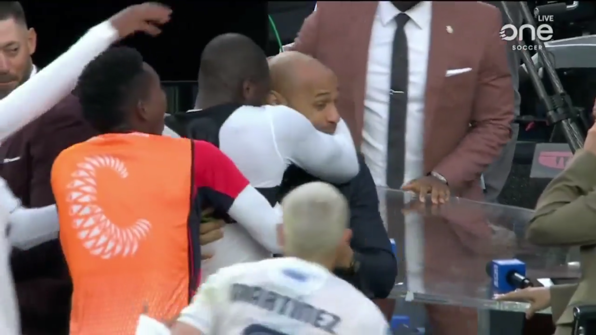 Но самое интересное началось cразу после: автор гола Сесилио Уотермэн перепрыгнул через рекламные щиты и побежал к студии канала CBS, где сидели телеведущая Кейт Абдо вместе с Тьерри Анри и Клинтом Демпси. Уотермэн обнял Анри…