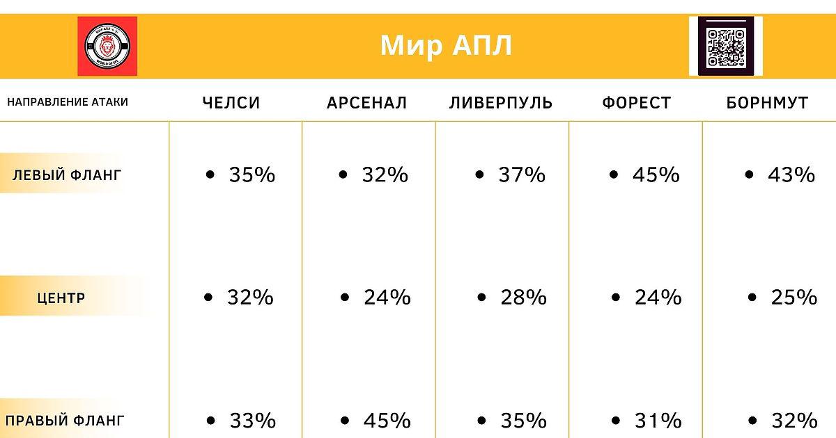 Как атакуют команды АПЛ? По каким направлениям строят атаку английские клубы? Я взял для сравнения 5 команд.