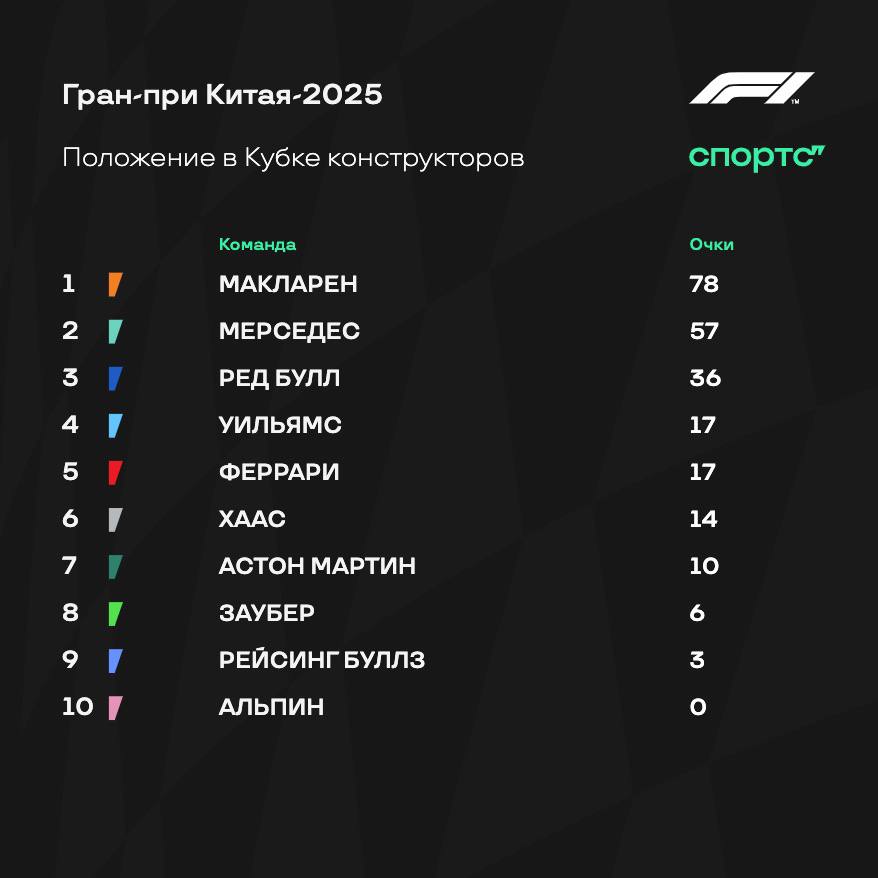 А в Кубке конструкторов итальянцы на одном уровне с «Уильямсом» и едва опережают «Хаас»: