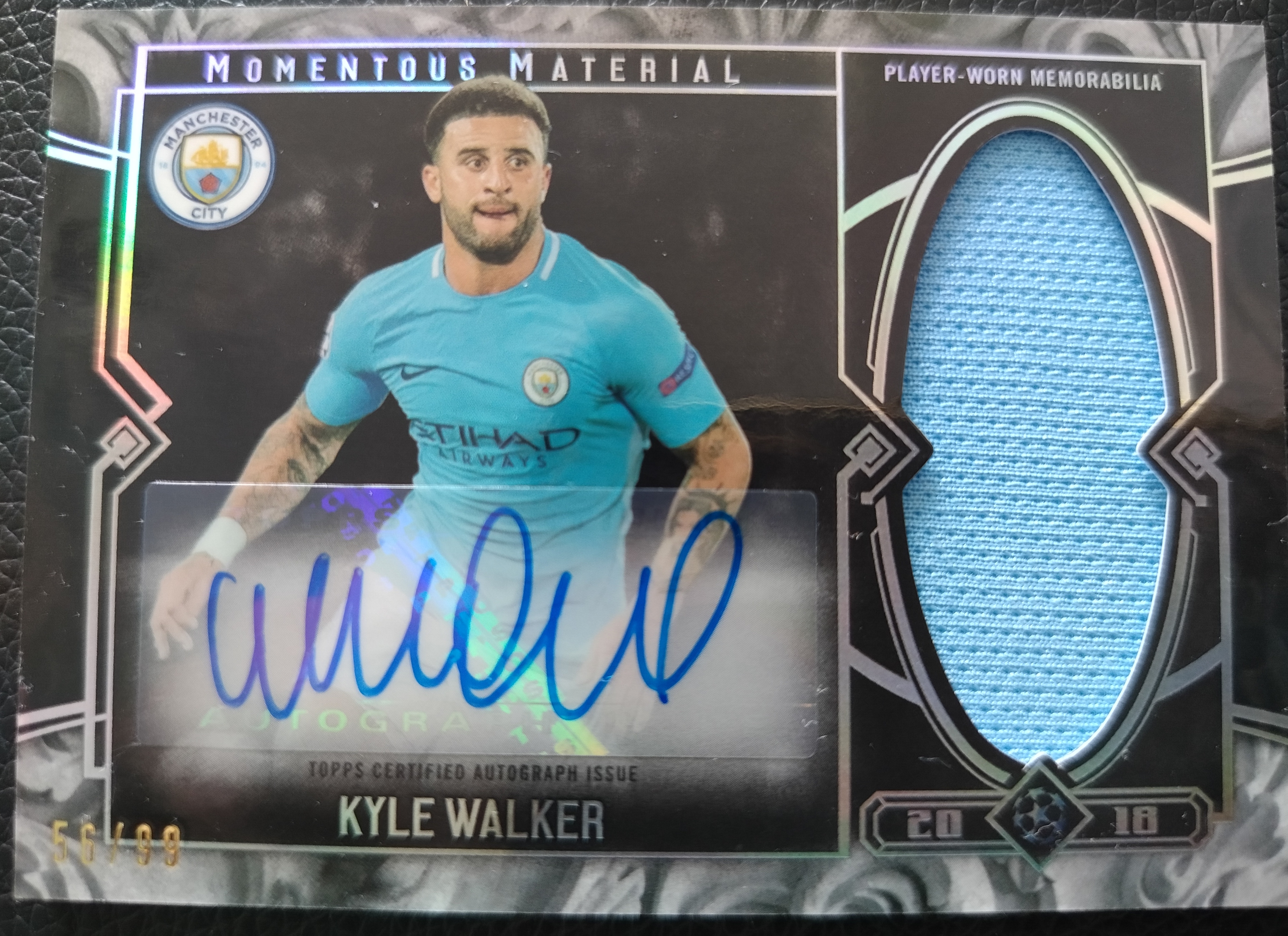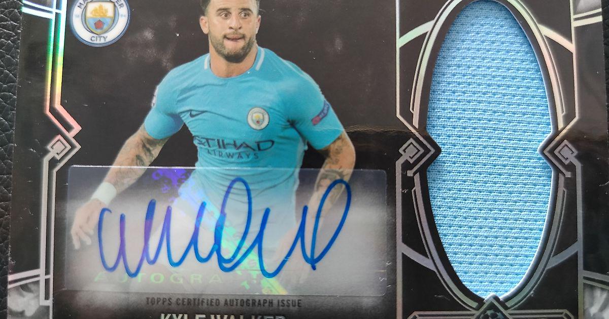 Усилиями Жезуса и того же Стоунза манчестерцы довели счет до полного разгрома - 0:4. Яркая победа, порадовавшая не только фанатов в голубой форме, но и новичка команды - эта голевая передача стала первой и единственной (пока) для Кайла в Лиге Чемпионов УЕФА. Тогда я не мог подумать, что смогу не только увидеть игру правого защитника по телевизору, но и позднее - буквально прикоснуться к частице того момента. Через несколько лет мне представилась возможность приобрести достаточно редкий карточный экземпляр того сезона, сочетающий в себе автограф игрока с элементом его формы.