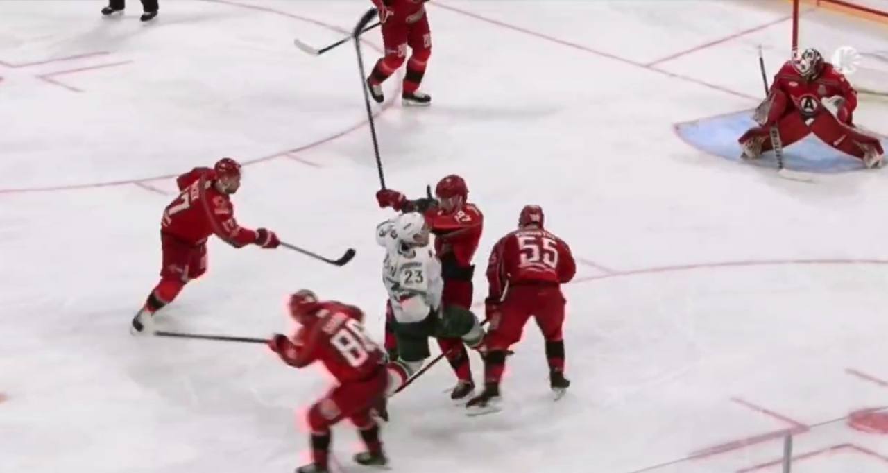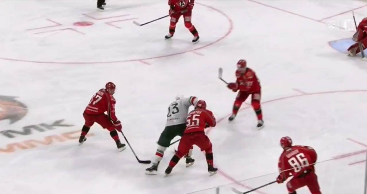 В середине второго периода капитан полез с шайбой на троих игроков «Автомобилиста». Его остановил Семен Кизимов. Удар преимущественно пришелся в лицо Яшкина. Там сразу появилась кровь.