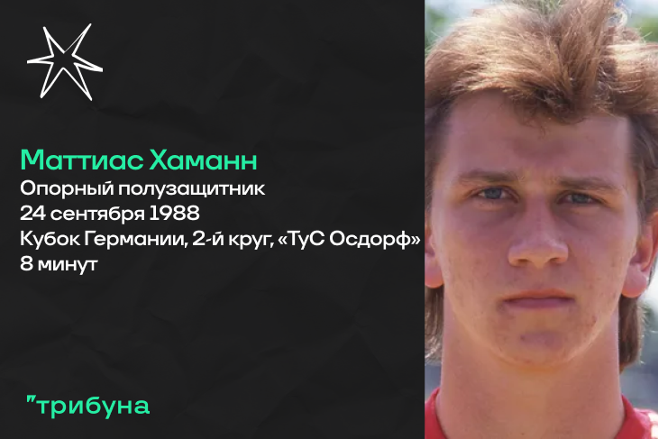 Опорник Маттиас Хаманн перешел в «Баварию» в 1988 году и весьма скоро дебютировал за главную команду. Он сыграл восемь минут в победном матче Кубка Германии. Уже в январе 1989 года полузащитник перебрался в «Фортуну» из Кельна, с которой провел полтора хороших сезона во второй Бундеслиге. Затем были годы в подвалах немецкого футбола, а в 1994 году состоялся дебют Маттиаса в Бундеслиге. Суммарно он провел четыре с половиной года за «Мюнхен 1860» и «Кайзерслаутерн», но основным ни там, ни там не был. Затем были Швейцария, несколько лет во второй Бундеслиге и завершение карьеры в австрийском клубе «ЛАСК» в 2004 году. Сейчас Хаманну пятьдесят семь лет.