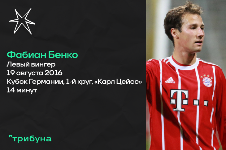 Хорватский уроженец Мюнхена, в юном возрасте даже игравший за молодежную сборную Германии, является еще одним воспитанником «Баварии» в этом списке. Свои единственные четырнадцать минут за основную команду Фабиан провел в матче Кубка против «Карл Цейсс», завершившимся уверенной победой мюнхенцев. В основном же, Бенко выступал за резервную команду клуба. В 2018 году он перешел в австрийский «ЛАСК», но практически не играл за его основу. Затем были клубы из немецких подвалов, в которых некогда довольно перспективный хорват выступает и сегодня. Сейчас двадцатишестилетний вингер защищает цвета клуба «Пипинсрид» из пятого по силе дивизиона.