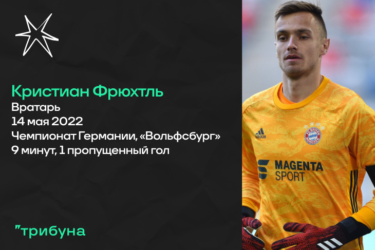 Голкипер Кристиан Фрюхтль сыграл в самой последней игре Чемпионата Германии 2021/22, когда «Бавария» уже решила все задачи касаемо Чемпионства. Он заменил Нойера на последние девять минут матча и пропустил один гол в свои ворота. В целом же немец, являющийся воспитанником мюнхенского коллектива, провел много лет в статусе резервного вратаря. Он немало наиграл за дубль и различные молодежки клуба, а также съездил в аренду в «Нюрнберг» в сезоне 2020/21, правда, не сыграв там ни матча. Летом 2022 года Кристиан за 500 тысяч Евро был подписан венской «Аустрией», где провел два хороших сезона в основе. С лета 2024 года двадцатипятилетний страж ворот сидит в запасе итальянского «Лечче». За его плечами немало матчей за молодежные сборные Германии.