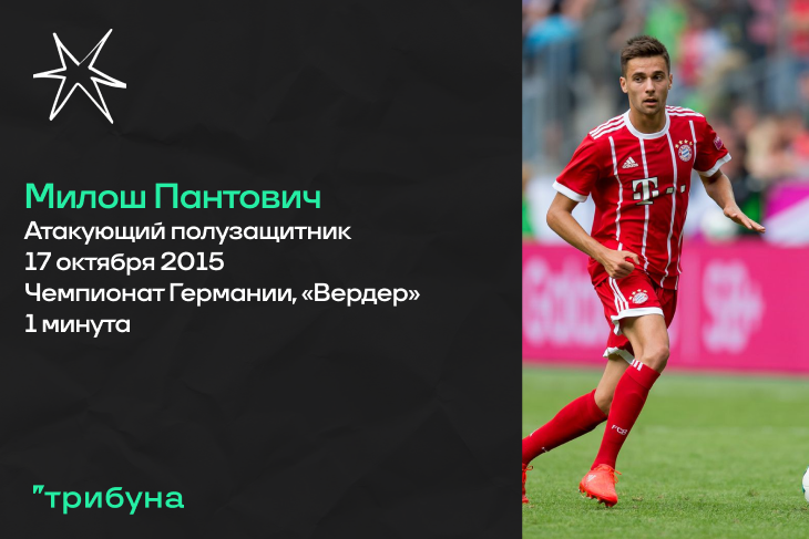 Теперь переходим к футболистам, выходившим за «Баварию» уже только в компенсированное к матчам время. Милош вышел на замену вместо Артуро Видаля в октябре 2015 года в матче с «Вердером». Пробиться в основу сербский уроженец Мюнхена не смог, поэтому в 2018 году Пантович отправился в «Бохум» из второй Бундеслиги. С этим коллективом Милош смог выйти в высший дивизион немецкого футбола, проведя там один полный сезон (причем в основе). Затем был сезон в запасе берлинского «Униона» и переход в бельгийский «Эйпен» в 2023 году. На данный момент двадцативосьмилетний полузащитник играет во втором бельгийском дивизионе.