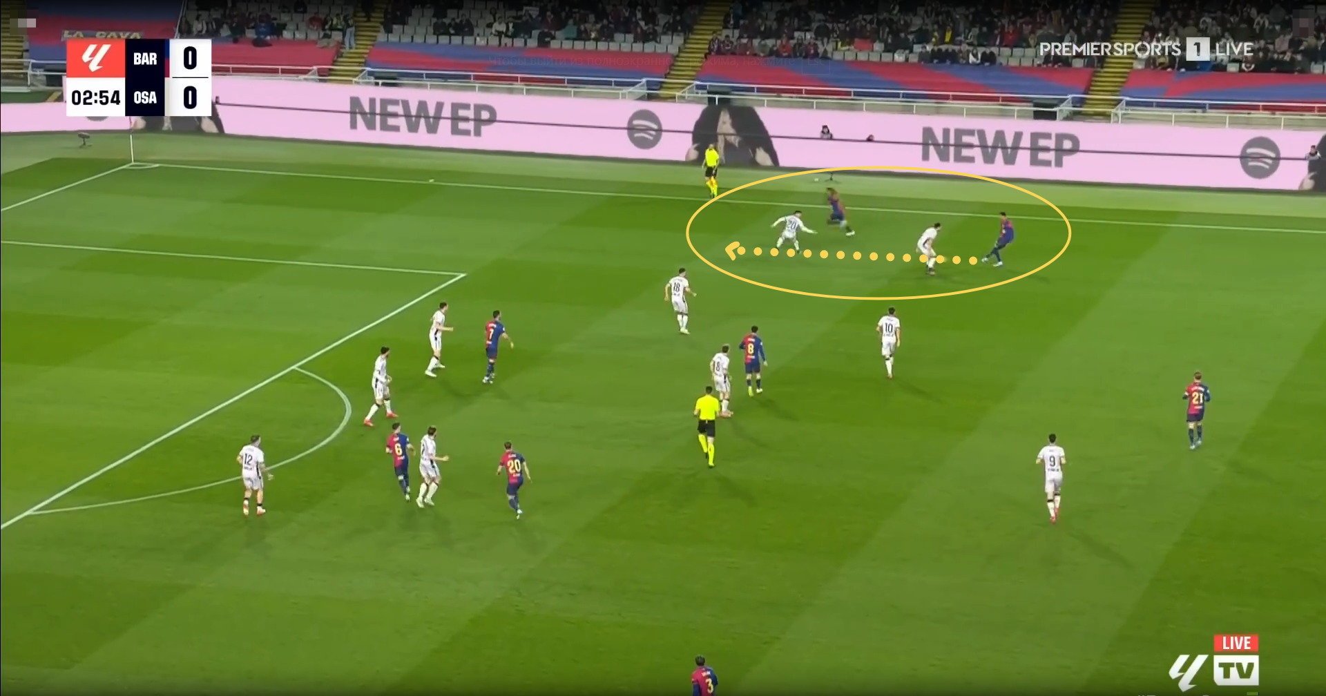 Также игроки «Осасуны» реагировали на рывки футболистов «Барсы» и могли оставлять свои позиции с целью опекать своего оппонента.