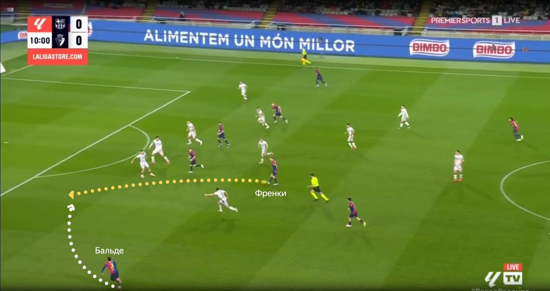 Из-за того, что часто игроки «Осасуны» смещались на фланг Ямаля-Кунде, по цепочке противоположный край становился более свободным. Там Бальде регулярно подключался вперед и пользовался полученной свободой.