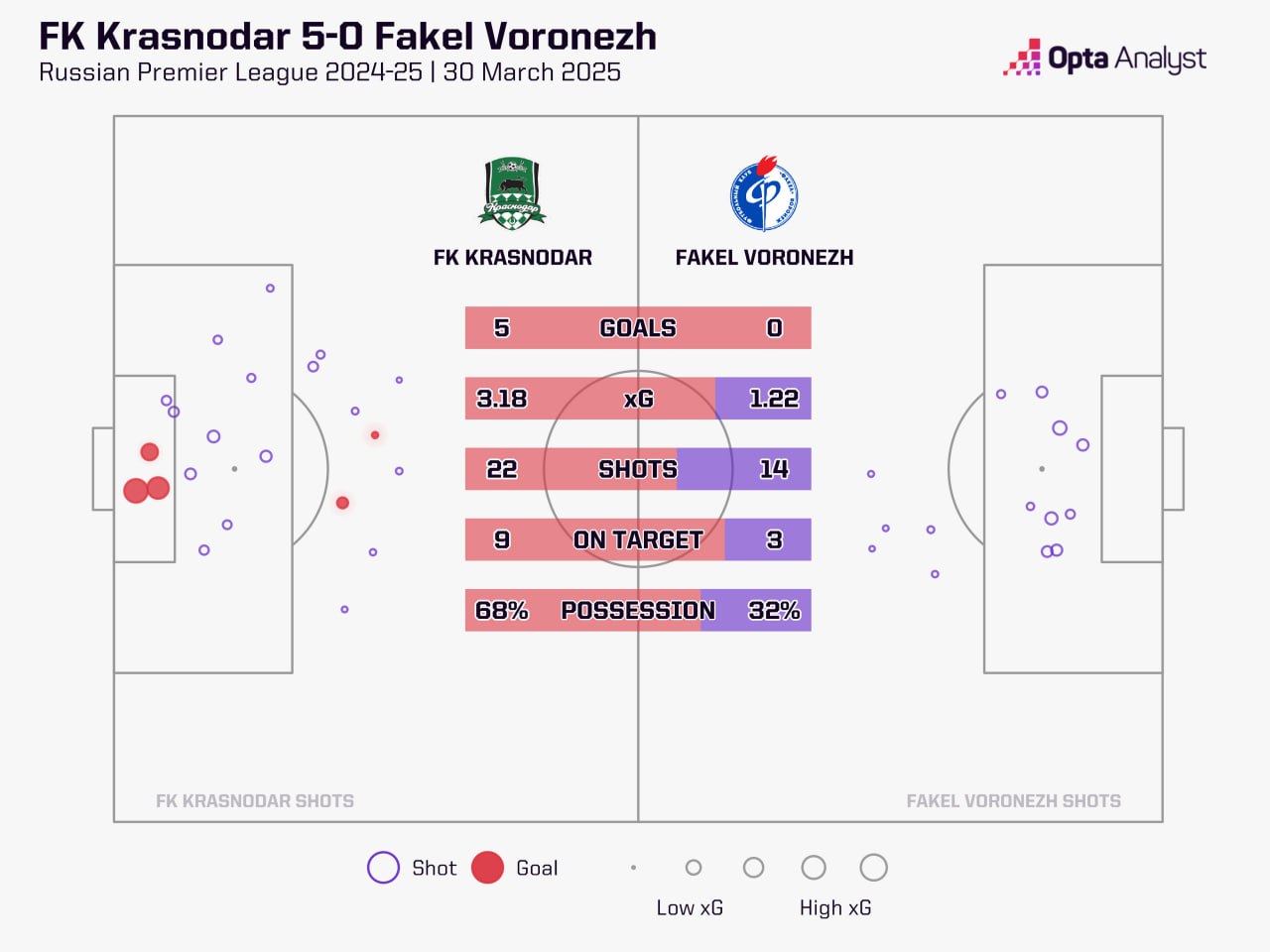 Краснодар продолжает укреплять свою позицию в турнирной таблице, разгромив Факел на своём поле. Уничтожение Факела происходит в одном тайме. Но я предлагаю перейти к обзору игры.