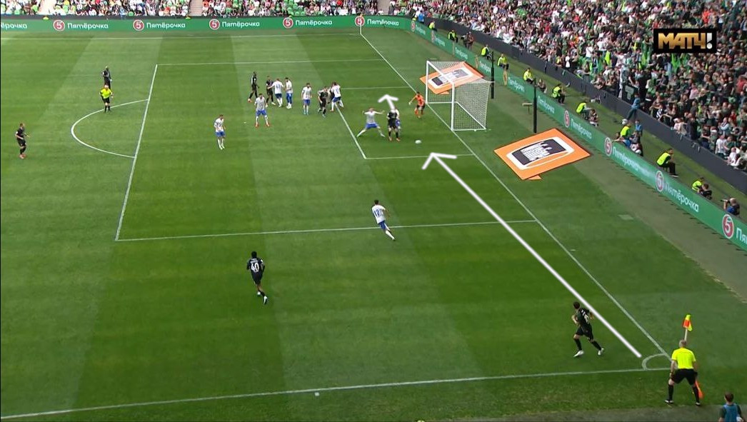 Но 80 минуте Данила Козлов, после розыгрыша углового, ставит точку в матче. Именно такой розыгрыш стандарта становится классическим для быков. И матч заканчивается со счётом 5:0.