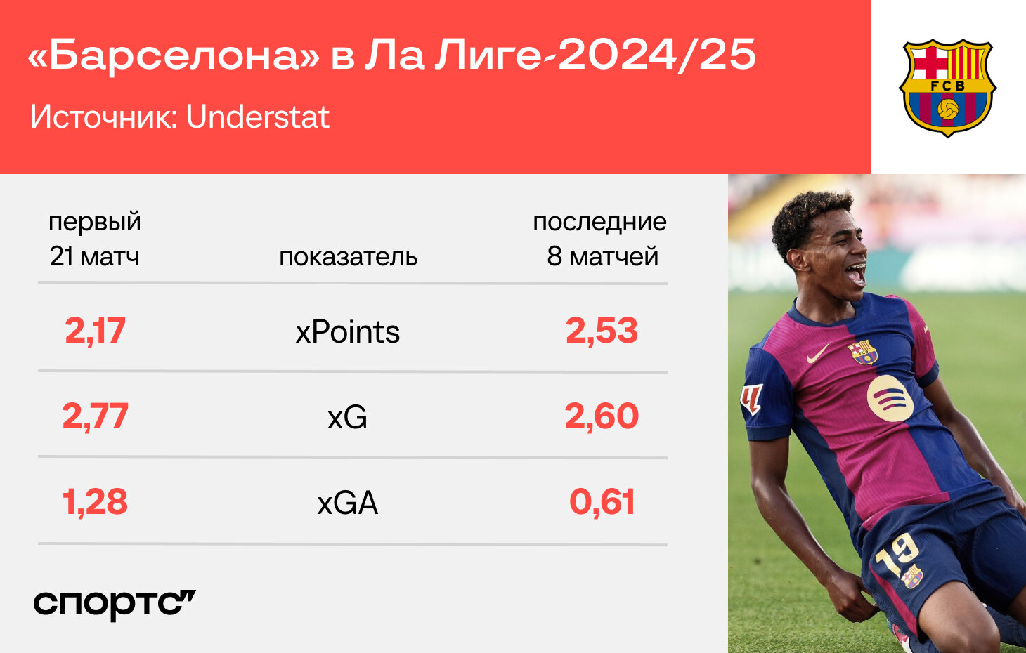 Предположение, что «Барса» может просесть к маю – вывод из первой половины сезона: топовый старт, тревожная ничья с «Бетисом» и дальше два поражения подряд. У каталонцев просто накопилась усталость. После новогоднего перерыва команда Флика посвежела и снова разносила соперников. В прошлый раз «Барселона» потратила силы за три месяца. Сейчас пошел четвертый, и спад кажется вполне возможным сценарием.