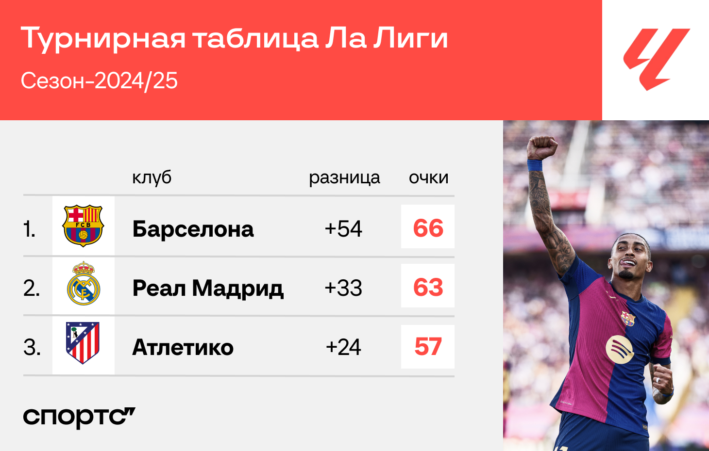 «Барселона» лидирует в таблице с отрывом в три очка.