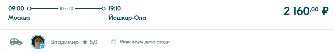 Самостоятельно доехать до города Йошкар-Ола можно с помощью популярного приложения «блаблакар». В отличие от поезда и автобуса тут есть возможность поторговаться с водителем. Стоимость обычно несколько дешевле, чем ехать автобусом, но дороже сидячих мест в поезде.