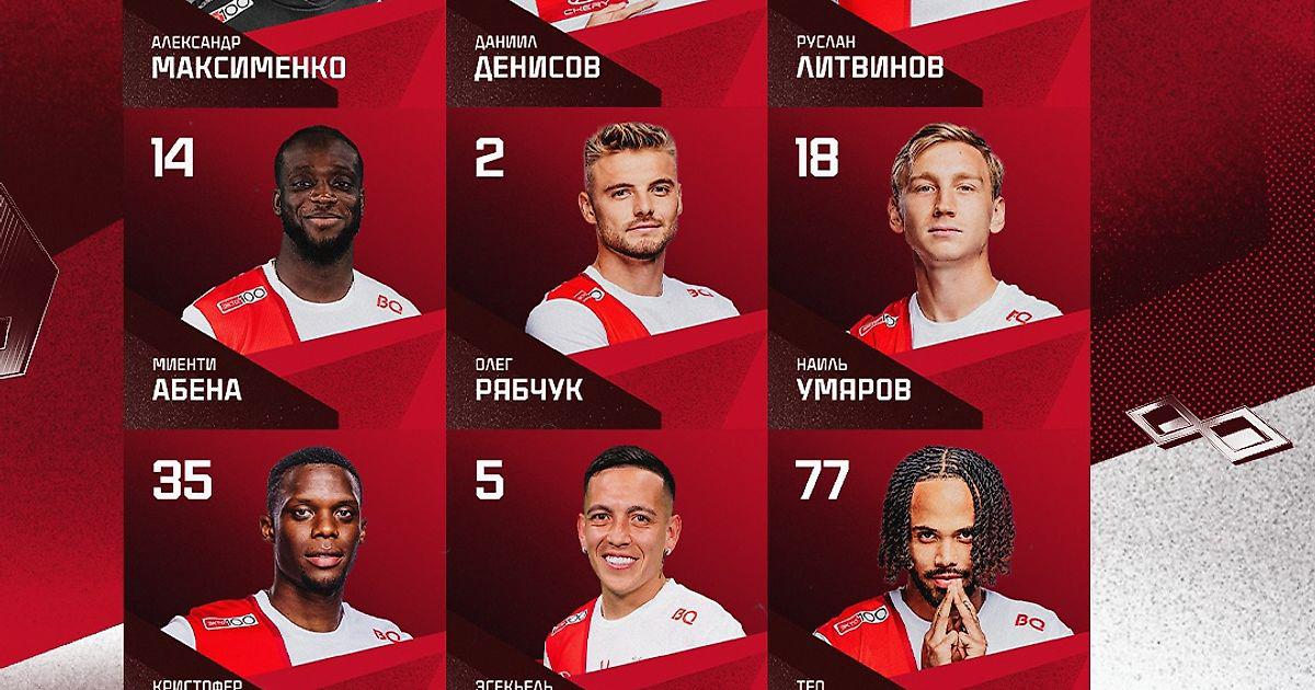 «Спартак»: Максименко (к), Денисов, Литвинов, Абена, Рябчук, Умяров, Барко, Мартинс, Маркиньос, Гарсия, Бонгонда.