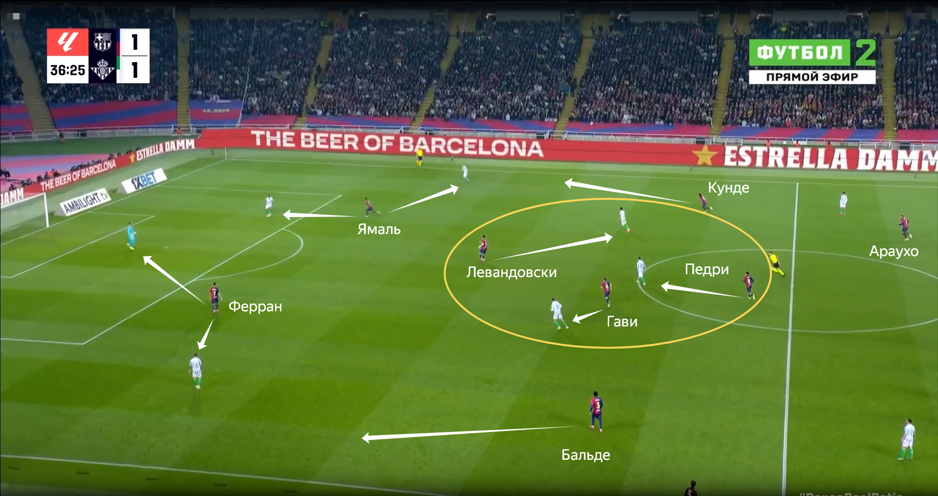 Если мяч шел на фланг, то Бальде и Кунде активно выдвигались на своих оппонентов. В этих зонах зачастую игроки «Барсы» вдвоем оказывали давление на футболистов соперника и отбирали мяч вблизи чужой штрафной.